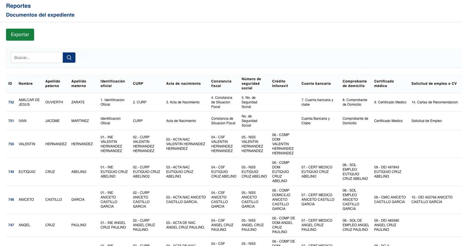 Agregué un reporte donde se pueden ver todos los documentos adjuntos al expediente del Trabajador.