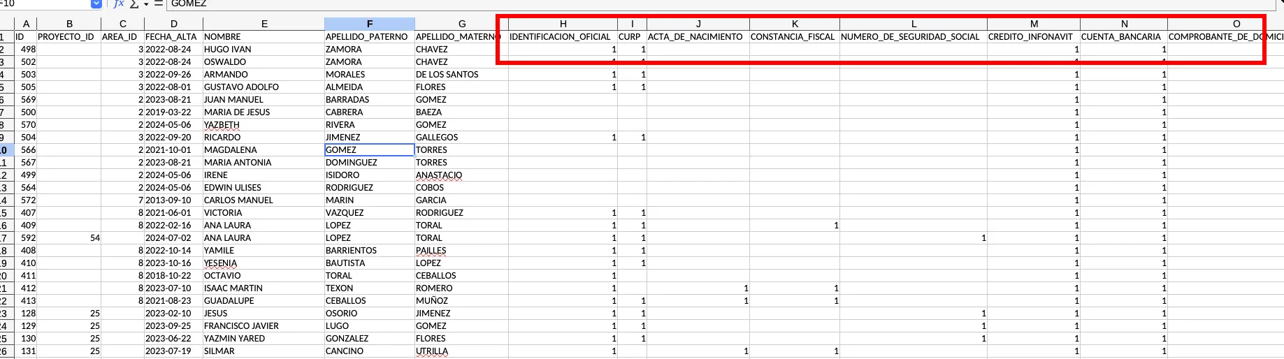 La cantidad de documentos del trabajador es grande, no cabía en la pantalla. Entonces decidimos poner números.