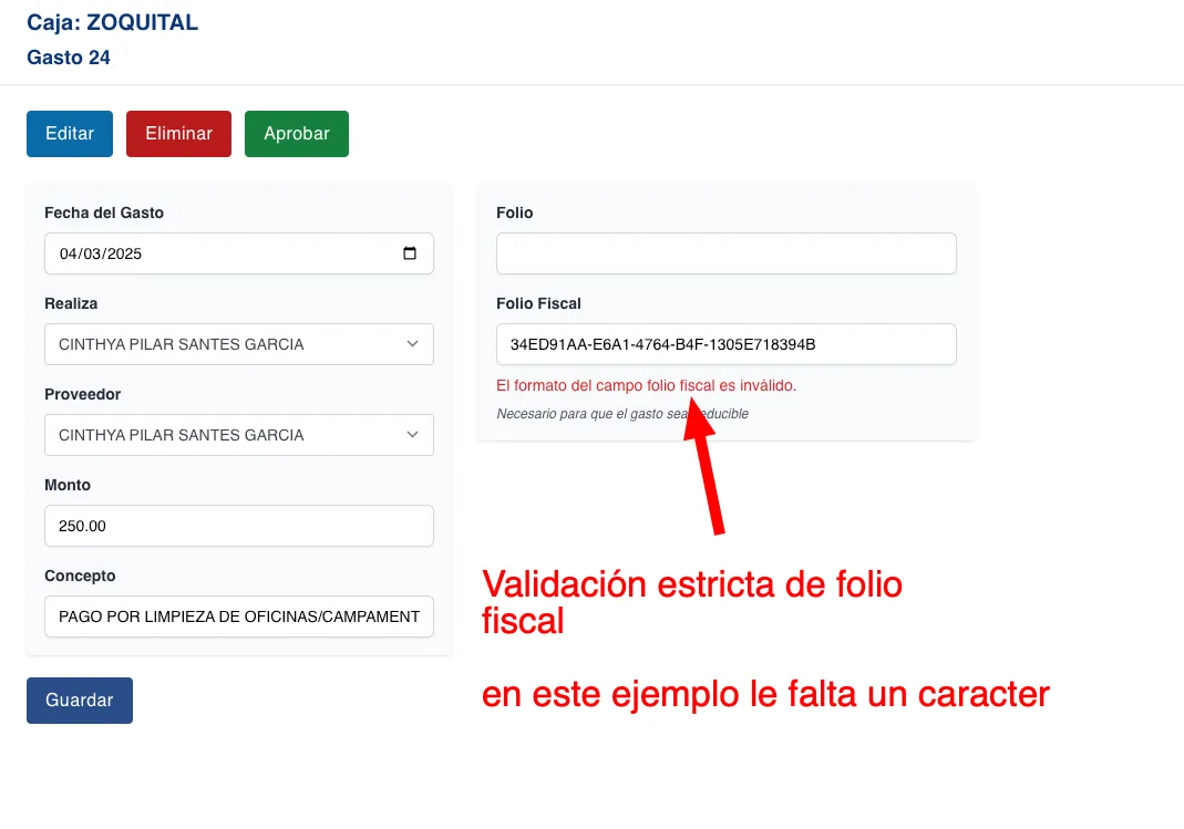 Validación estricta de folio fiscal, no se pueden equivocar ni por una letra