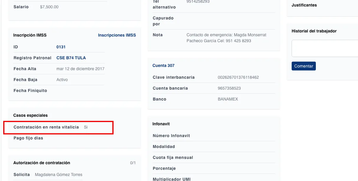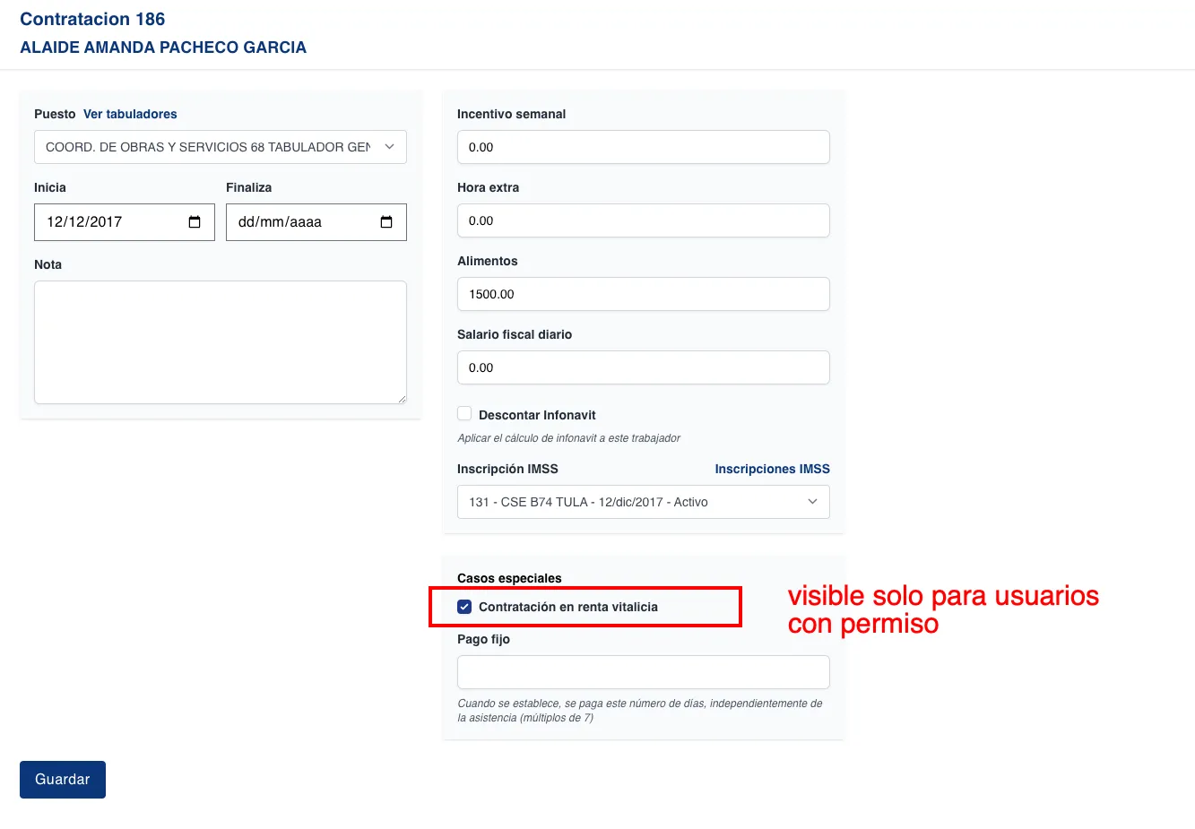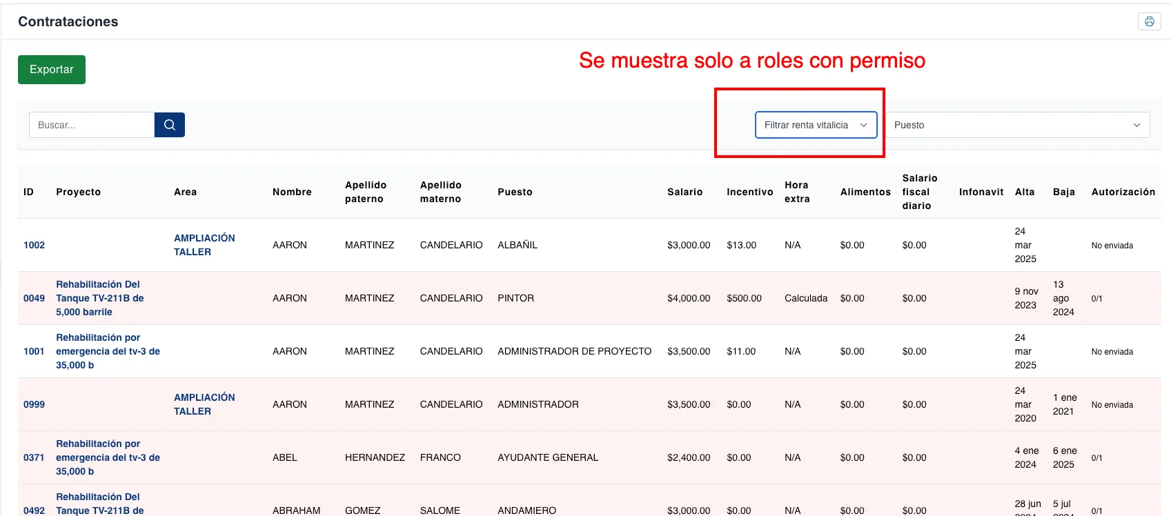 También aparece en la vista de contratación únicamente para los que tienen el permiso