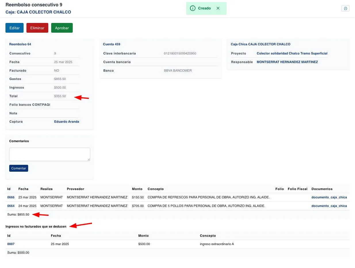 Sin embargo esto no era preciso ya que previo al pago, estos ingresos ya deben estar asociados al reembolso para poder aprobarse y enviarse a pago.