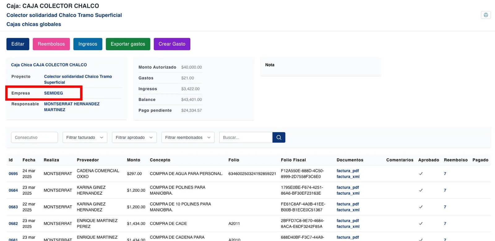 El valor de empresa también se va a mostrar en los documentos de reembolso de caja chica