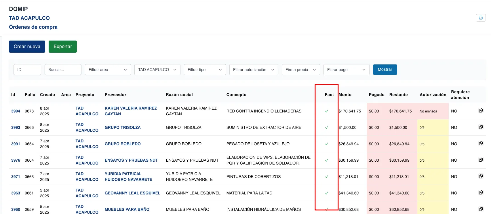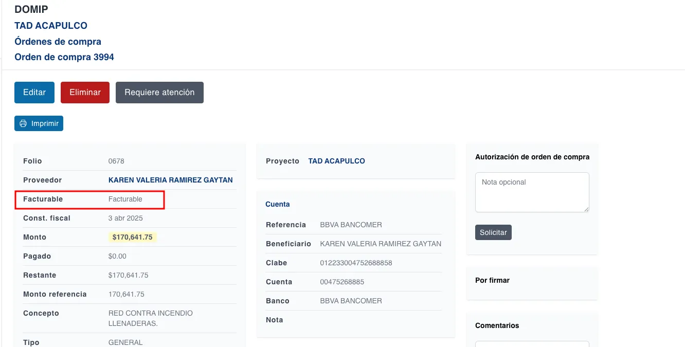 Agregué “facturable” a las OC para aplicar la validación de CSF de forma condicional
