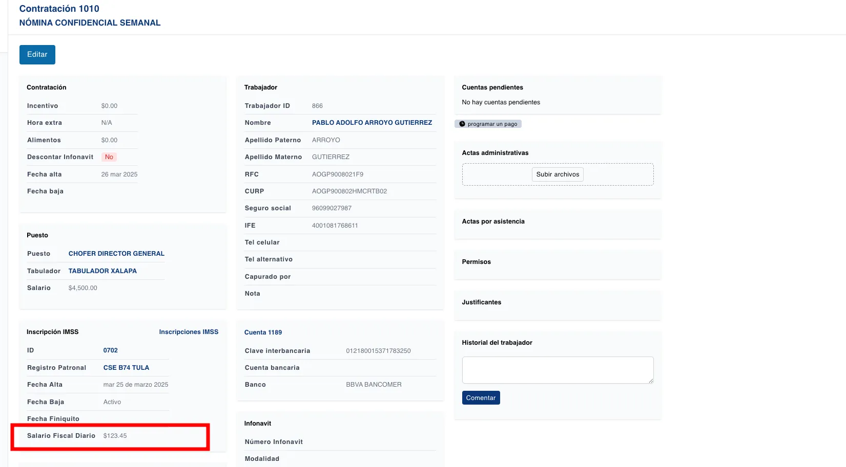 Este valor nos ayudará a separar la nómina en sus partes correspondientes.