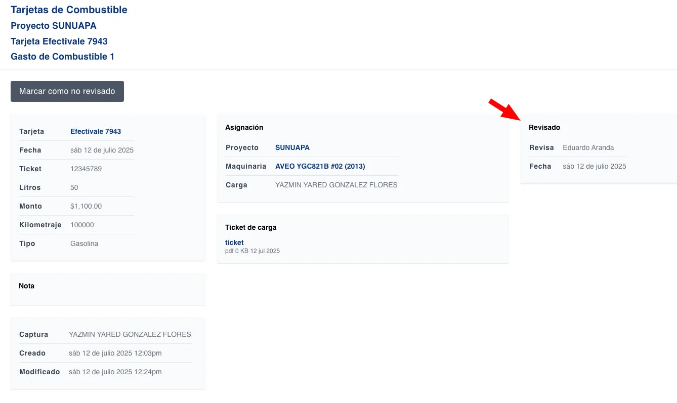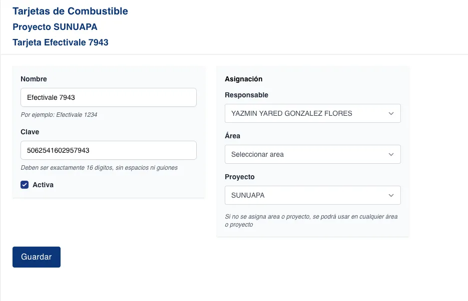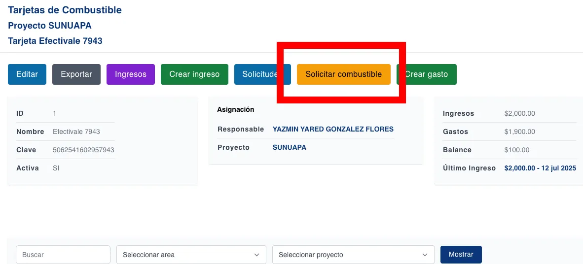 Por ejemplo: “Efectivale 7943” la tiene Yazmín y es para uso en el proyecto “SUNUAPA”
