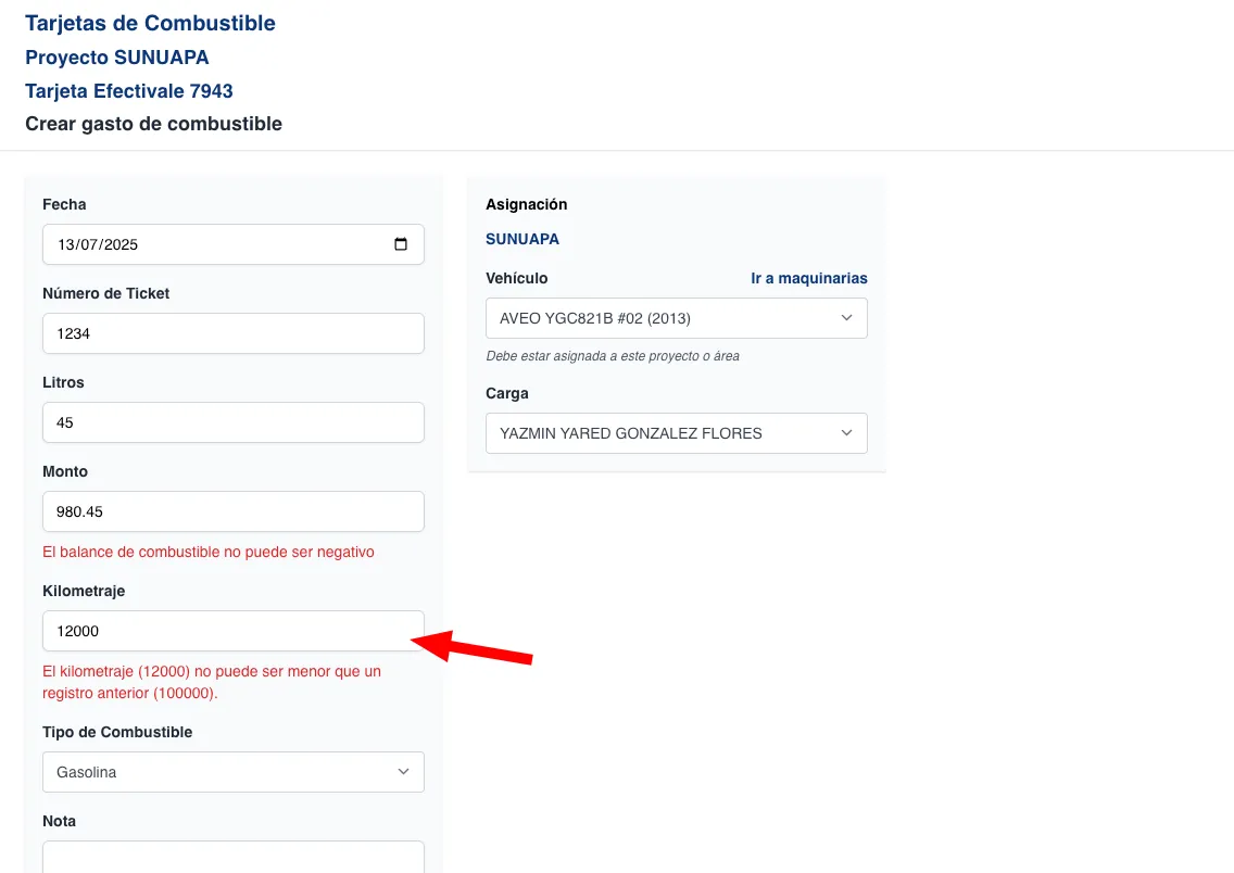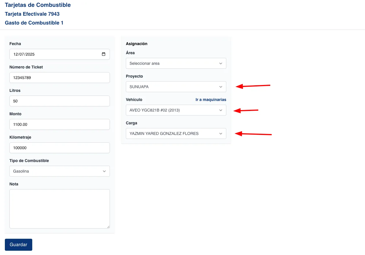 Por ejemplo, aquí se carga al Aveo asignado a Sunuapa y la carga la efectúa Yazmín.