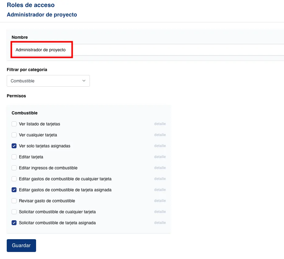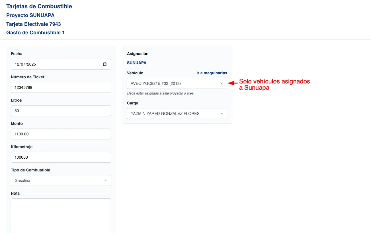 Si nosotros dejamos sin asignar el proyecto, entonces la tarjeta de combustible puede ser usada en vehículos de cualquier proyecto.