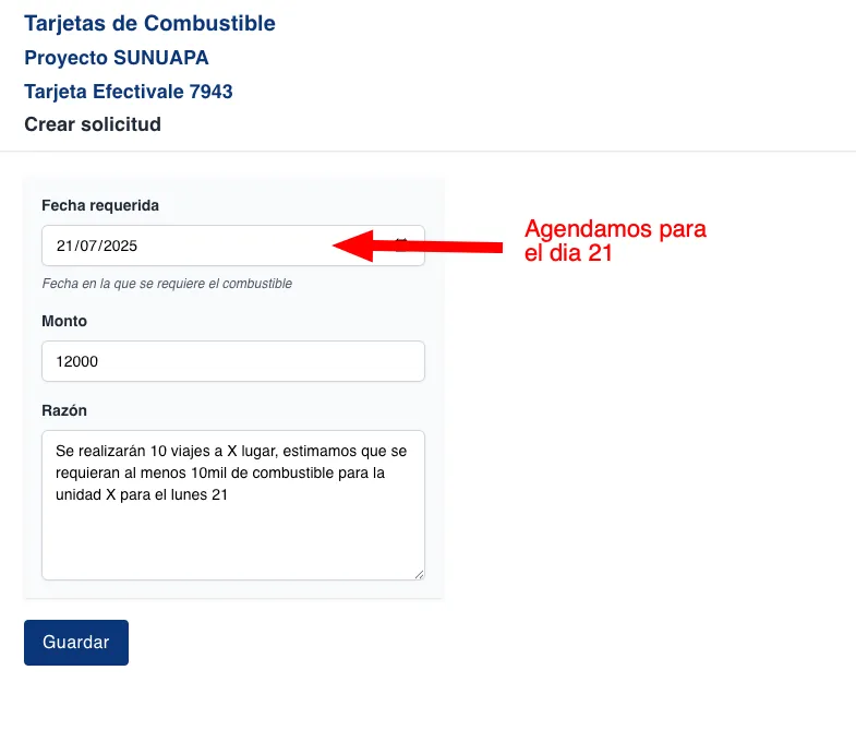 Para eso, podemos crear una solicitud para agendar ese monto para una fecha específica.